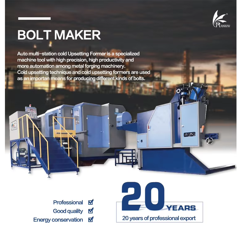 The multi-station cold forging machine, in terms of working principle, achieves the forging and forming of metal wire through continuous multi-stations.